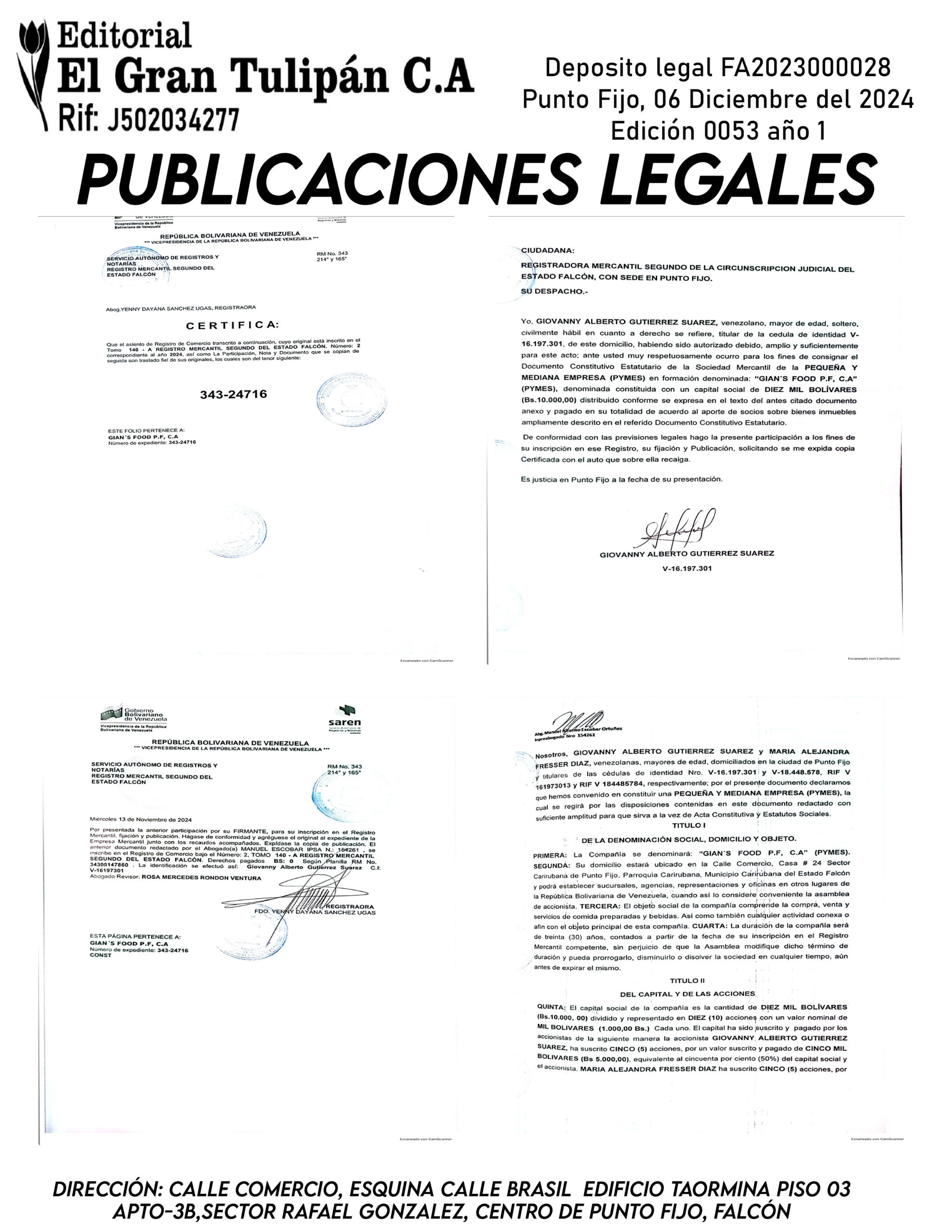 PUBLICACIONES LEGALES 0377-GIANS FOOD PF, C.A Por Wilner Otero - 6 de diciembre de 2024 FacebookXWhatsAppTelegramCopy URL Descargar Descargar Descargar